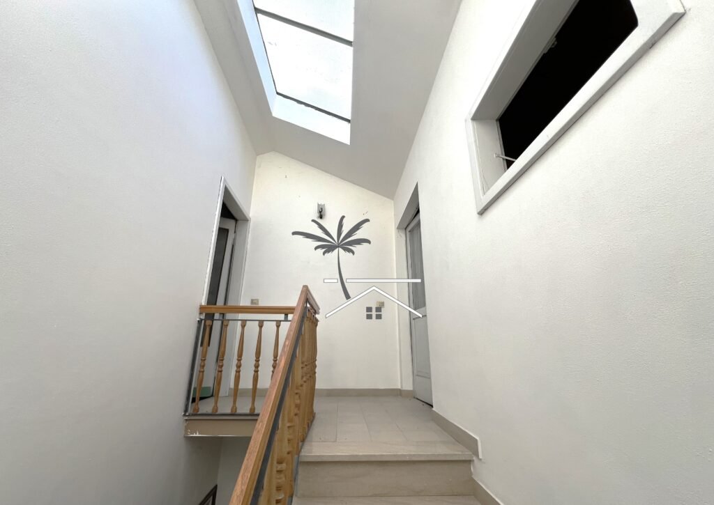 E’ sviluppata su tre livelli abitativi fuori terra, composta dal piano terra con la cucina divisa dal salotto e due vani adibiti a cantina, salendo le scale al primo piano sono presenti due camere matrimoniali con uscita sul primo terrazzino, un bagno con box doccia rifatto, una zona lavanderia con caldaia sostituita recentemente, e un ripostiglio